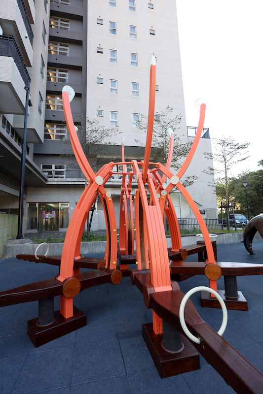 藉著乘坐搖搖椅產生的起伏做為動能,編織成互動的動態地景。在白天,行人可在遠處輕易地看到頂端如微風吹過花蕊般的搖擺;在夜晚,燈蕊搖曳,乘坐的行為成為夜晚的特色光景。