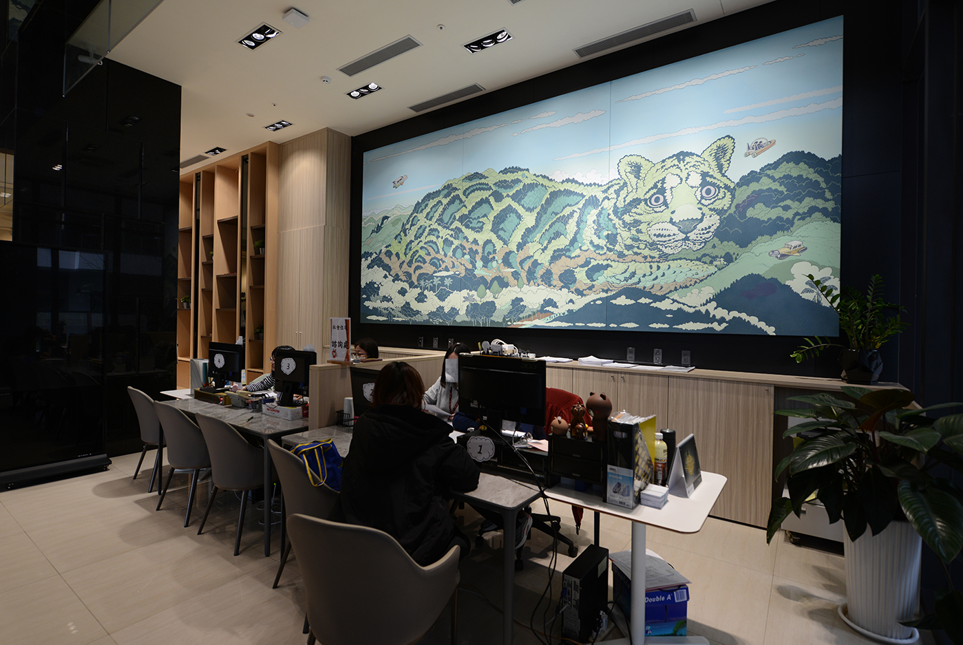 社宅承載了人們對家的期待與想像,如果可以拉開尺度、超越時間、顛覆想像,那麼我們的家會是什麼樣子?作品《共生》透過神獸的置入,開啟了視覺上的超現實想像,藉由奇想的筆觸,連結淺山、人、聚落、城市與動物,讓想像力與祝福在社宅裡蔓延;作品同時也隱含居住議題,從人類活動延展到自然生態,引人思索在追求更快更好的同時,如何與自然共好。