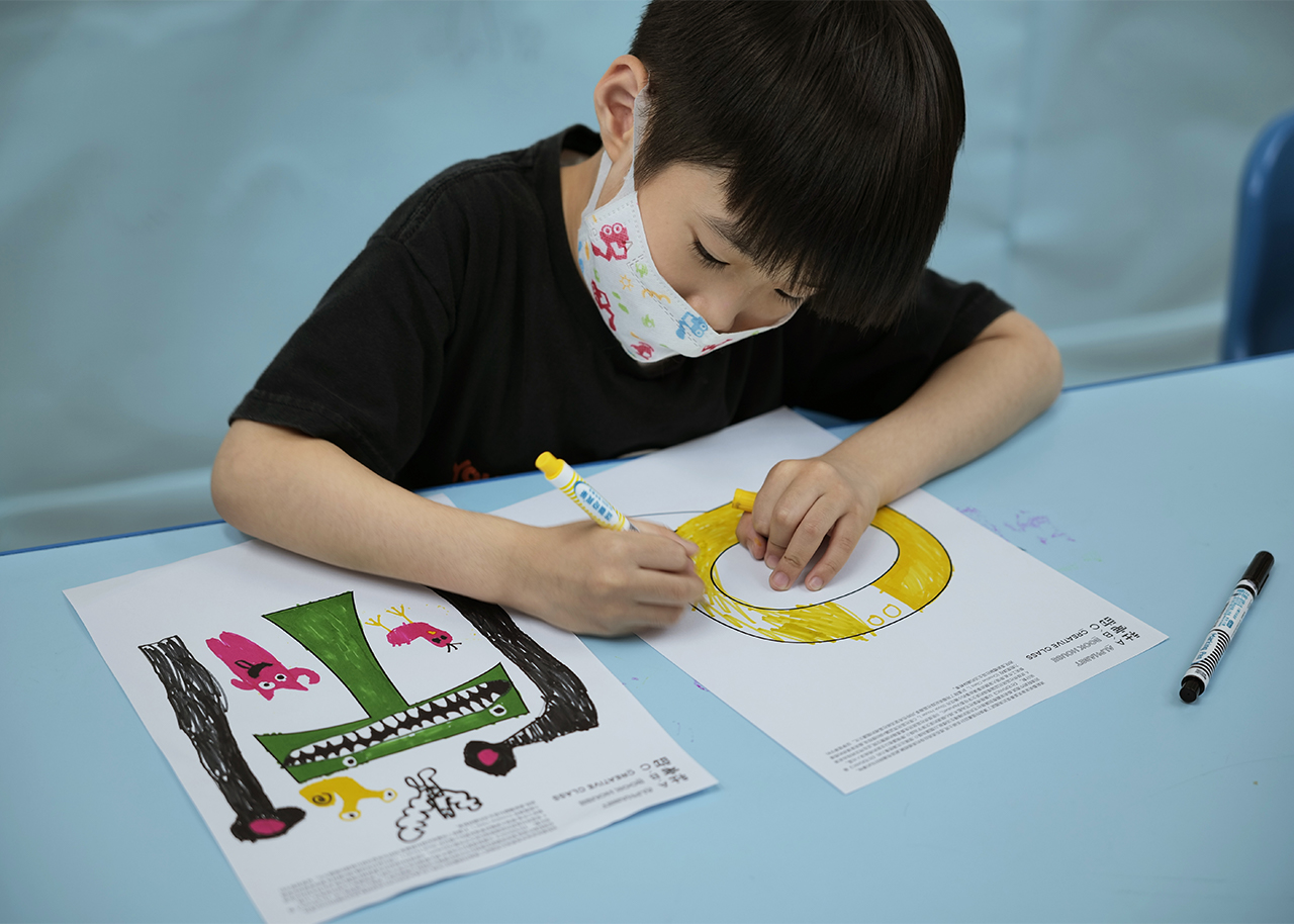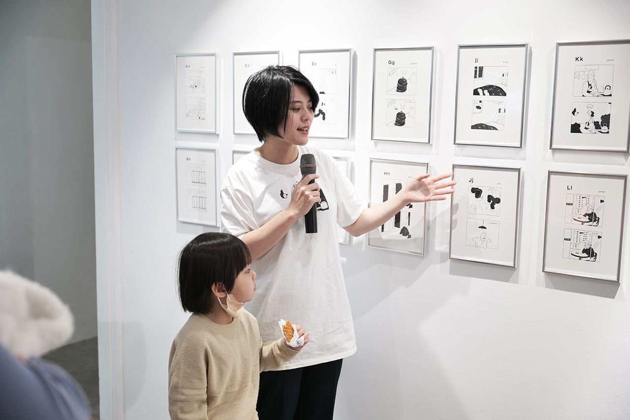 展覽期間,藝術家除展出26幅字母書的插畫畫稿,展場亦化身小雞書屋,擺放由藝術家精選、收藏的字母繪本,更辦理多場閱讀及肢體親子工作坊,期望邀請大家透過藝術,以有趣的方式學習,也藉此活絡社區裡的閱讀文化。