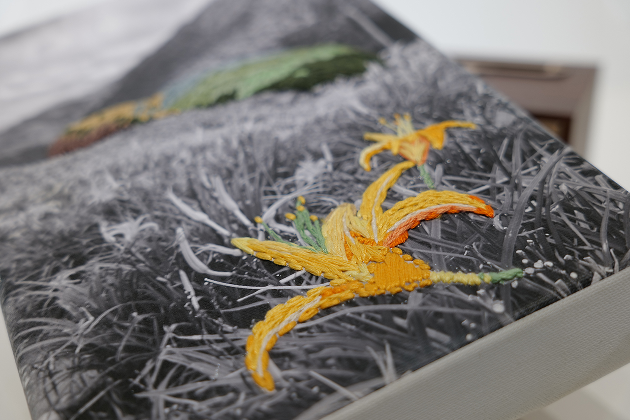 藝術家時常關注女性勞動力在時代變遷的狀態,透過創作探究身體與影像之間隨著時間而不斷變動的關係。在本次進駐計畫中,侯怡亭以民眾參與為創作主體,透過刺繡工作坊邀請社宅與社區居民共創,將廣慈社宅前身-廣慈博愛院曾設立之習藝所、婦女職業輔導所相關手工技藝作為連結方法,帶領參與者在自己提供的照片上創作,以繡線自由賦予影像特定局部的顏色,給予影像一個「肉身」,將停滯過去的影像,透過身體、技術及勞動,縫合時代之間個人感性、日常勞動與共同記憶,最終與藝術家的創作一同展出。