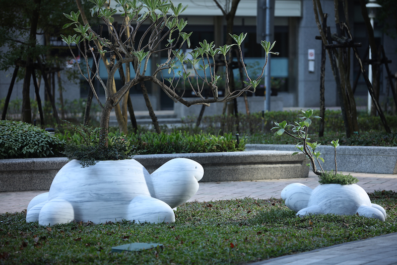 身體是靈魂的容器,居所為生活的載體,藝術家將烏龜的殼改造成生命的載體,取其長壽、慢活的寓意。於其中培植真實植物,隨自然界的規律生長。烏龜殼如石、如山、如島,也如容器般乘載了無數生命故事,悠遊漫步享受於自然土地之上。