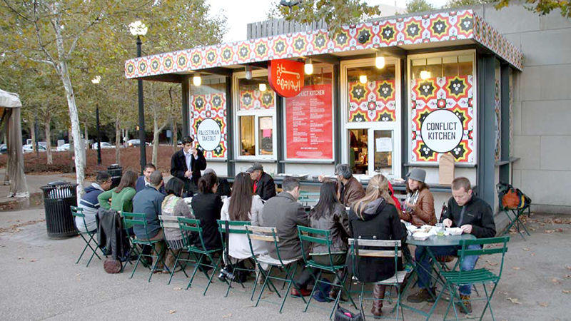 在美國匹茲堡發起的「衝突廚房」(conflict kitchen),專門挑選正和美國有政治衝突的國家,包括伊朗、阿富汗、北韓、委內瑞拉等國,提供該國餐點,透過美食的催化,讓客人進一步了解其文化,並且因理解進而同理和包容,期盼有一天來臨的世界和平。