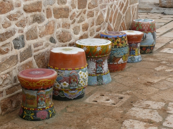 位於金門明遺老街的作品,採用中國傳統古代家具「繡墩」,一種低矮渾圓的座椅造型,邀請居民和學生,一起動手塑造、描繪、再窯燒成型。作品完成後,置於老街上成為街道家具,在在傳遞地方風俗,復興了傳統工藝的美學。